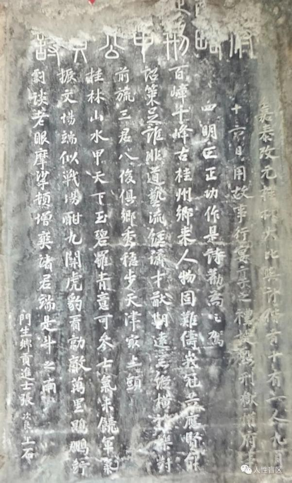 在一块较为平整的崖壁上,看到南宋诗人王正功的“桂林山水甲天下,玉碧罗青意可参”的崖刻诗句真迹,这是最早赞美桂林山水的诗词,由其门生乡贡进士篆刻于此。