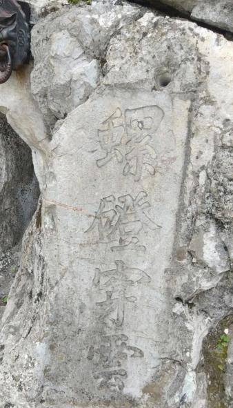 这是雕琢在登山(独秀峰)山径道旁的“螺磴穿云”牙刻,指引上山的游人,也预示着登顶的不易,如同螺间小径,蜿蜒曲折又陡峭;