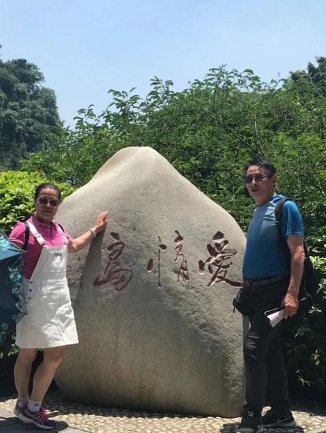 进来后沿着漓江顺流闲逛几分钟,到了一座小岛,江边草坪旁,立了一块石碑,称为“爱情岛”,夫妻、情侣们在此留影,络绎不绝、争先恐后,好像只有留了影,才能爱得深一样;终究,我们也未能免俗。