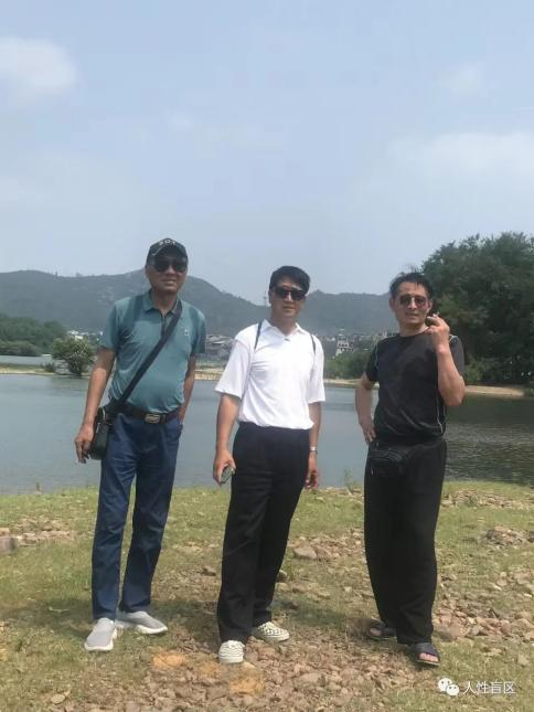 我上岸后,以领队施老师为核心的“帅哥”团队也合了张影,另二位帅哥跑开了,右一是酒友大刘哥。虽骄阳似火烈日难挡,但微风拂面神清气爽。