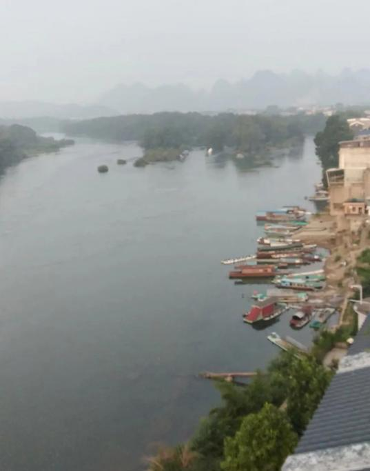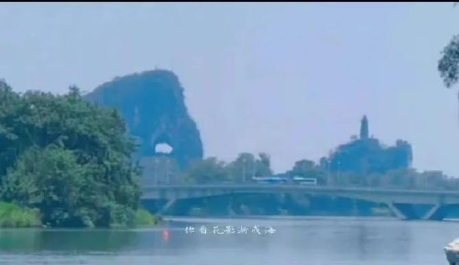 看得出这些都是为吸引游客的人工景点。然后走上“解放桥”,站在桥上放眼远眺,本以为这是象鼻山,其实那是伏波山。