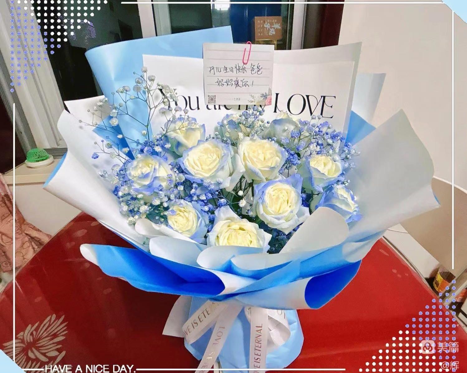宝,妈妈想跟你说,其实你去了远方又如何?能给你的,爸妈一样也不会落下,有关你的日子,就是爸妈存活于这个世界最最重要的的日子,亦如今天,爸爸妈妈都会精心的给你准备,你喜欢的生日蛋糕,你喜欢的鲜花,你喜欢的零食,你喜欢的奶茶,你喜欢的香水,你喜欢的一切一切,爸妈都给你一一备好,无一遗漏,对了宝贝,妈妈今年特意给你选的碎冰蓝玫瑰配满天星花束,爸妈现在偏爱蓝色,终是源于蓝色是你的最爱,爱你所爱,想你所想!白驹过隙,时间带不走爸妈爱你的那份执着和坚持!
