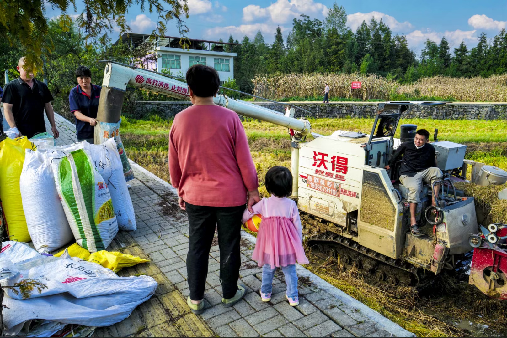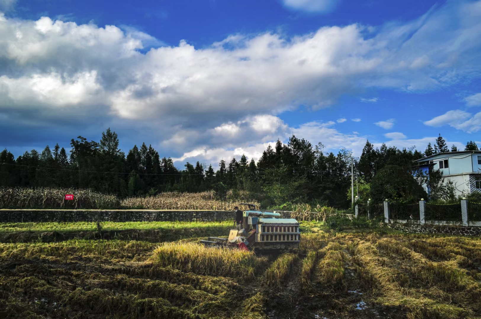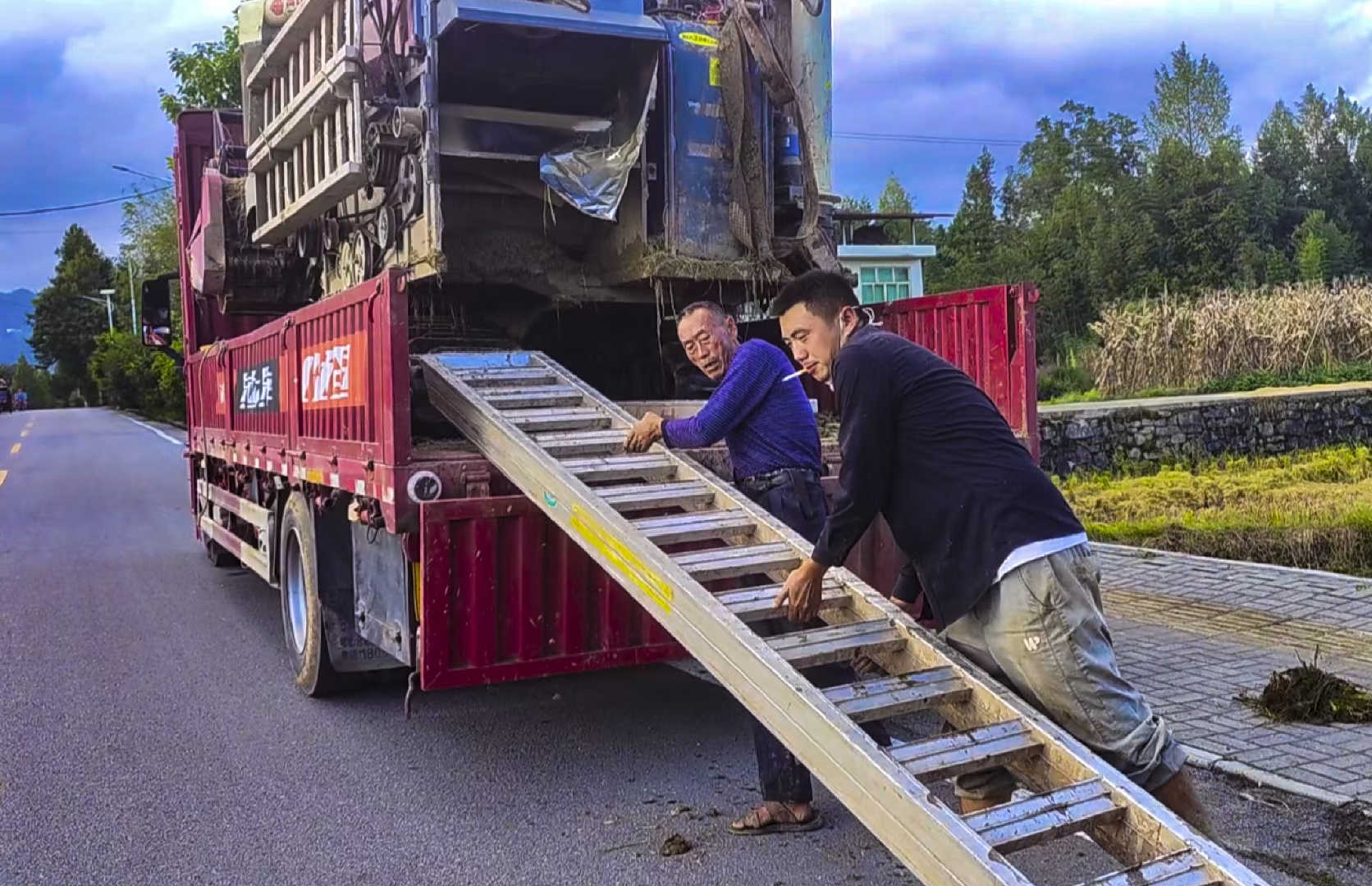 利川晚稻已近秋收季节,偶遇安徽省来的父子二人,自驾大货车装载着收割机到利川来帮乡民收割,一小片稻田收割带出谷子不用半小时,收入费用700元,采访他们说排除一路吃住油费过路费等消耗赚不了多少钱,现在乡下年轻人都进城打工也不做农活了,也没人力自己搞秋收,所以开着收割机全国到处跑秋收是当代的麦客,著名摄影家侯登科拍过的乘火车到处跑的镰刀麦客也一去不复返了。