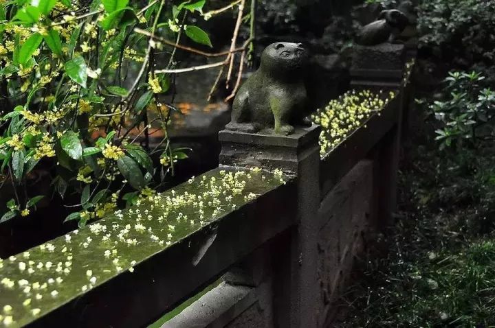 行车穿过街道,空气中弥漫着桂花的甜蜜的香味。梁实秋在《雅舍谈吃》中谈吃栗子时,顺带提及了杭州的满家弄的的桂花,也就是现在西湖新十景中的 –“满陇桂雨”。