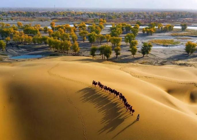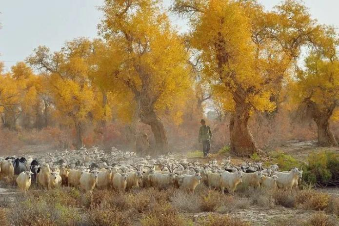 这群胡杨林是沙漠中的奇迹它们围绕在塔里木河边每到10月下旬就绽放出一年中最亮丽的色彩