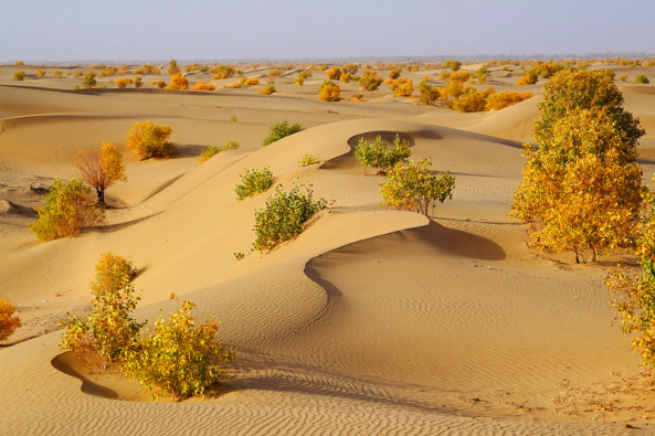 在南疆轮台县的干旱之处不改妩媚风姿任风吹,任沙埋,坚韧地屹立天地间