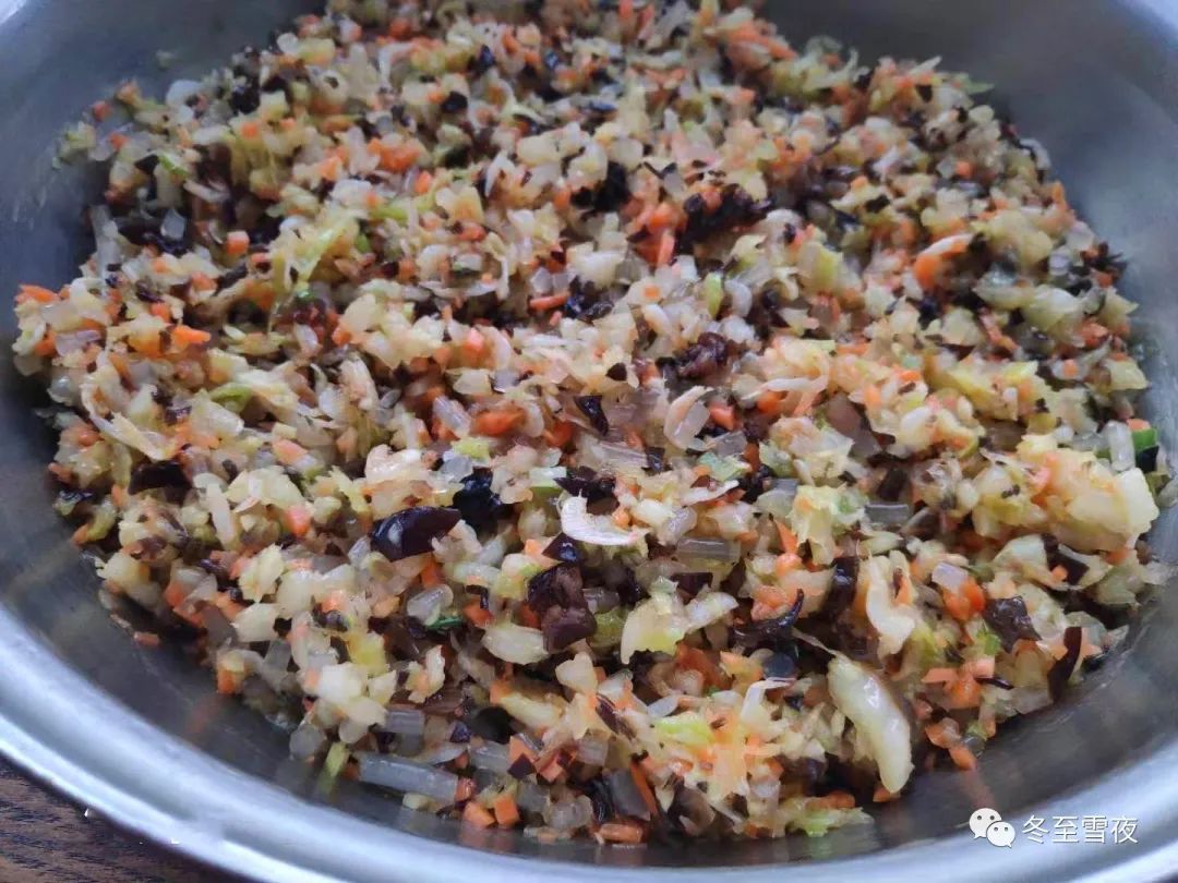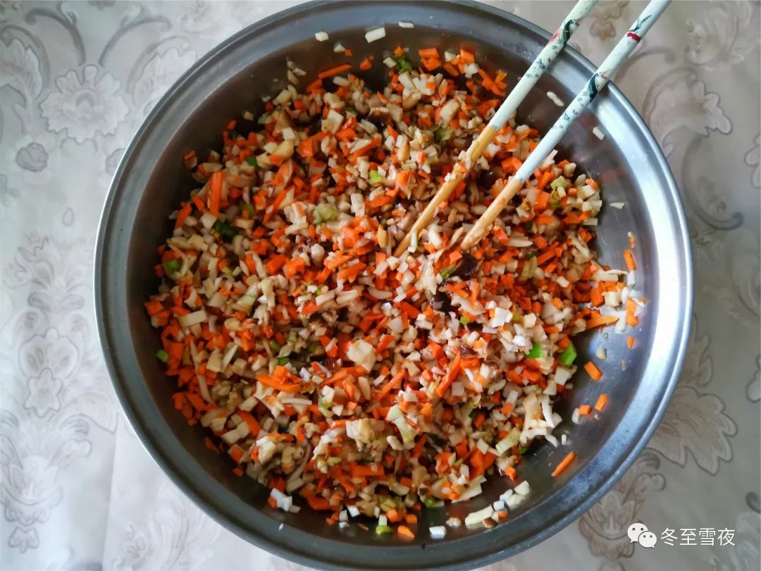 【什锦素馅饺子】所需材料:白菜半棵、胡萝卜1根、粉条1把、水发木耳1碗、虾皮2汤匙、油盐适量、葱1段、姜1块、花椒20粒左右、蚝油1汤匙、生抽2汤匙、十三香1茶匙、
