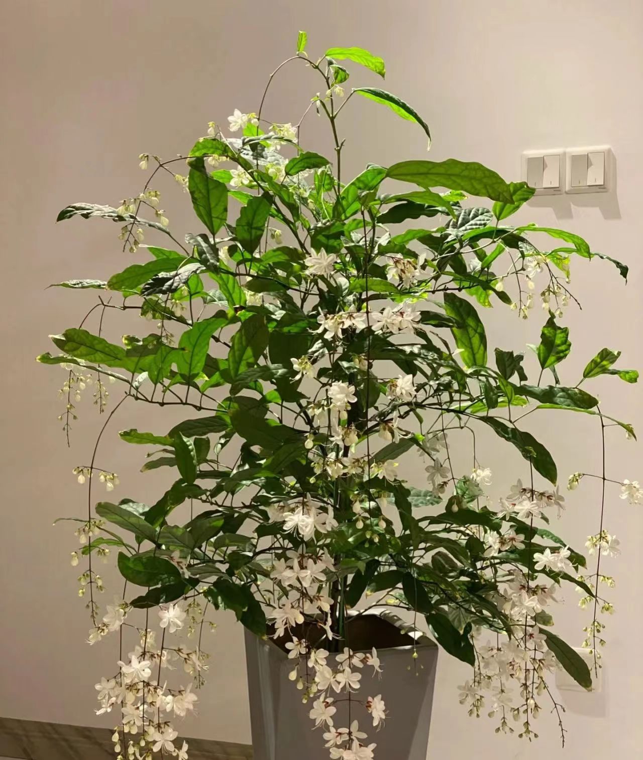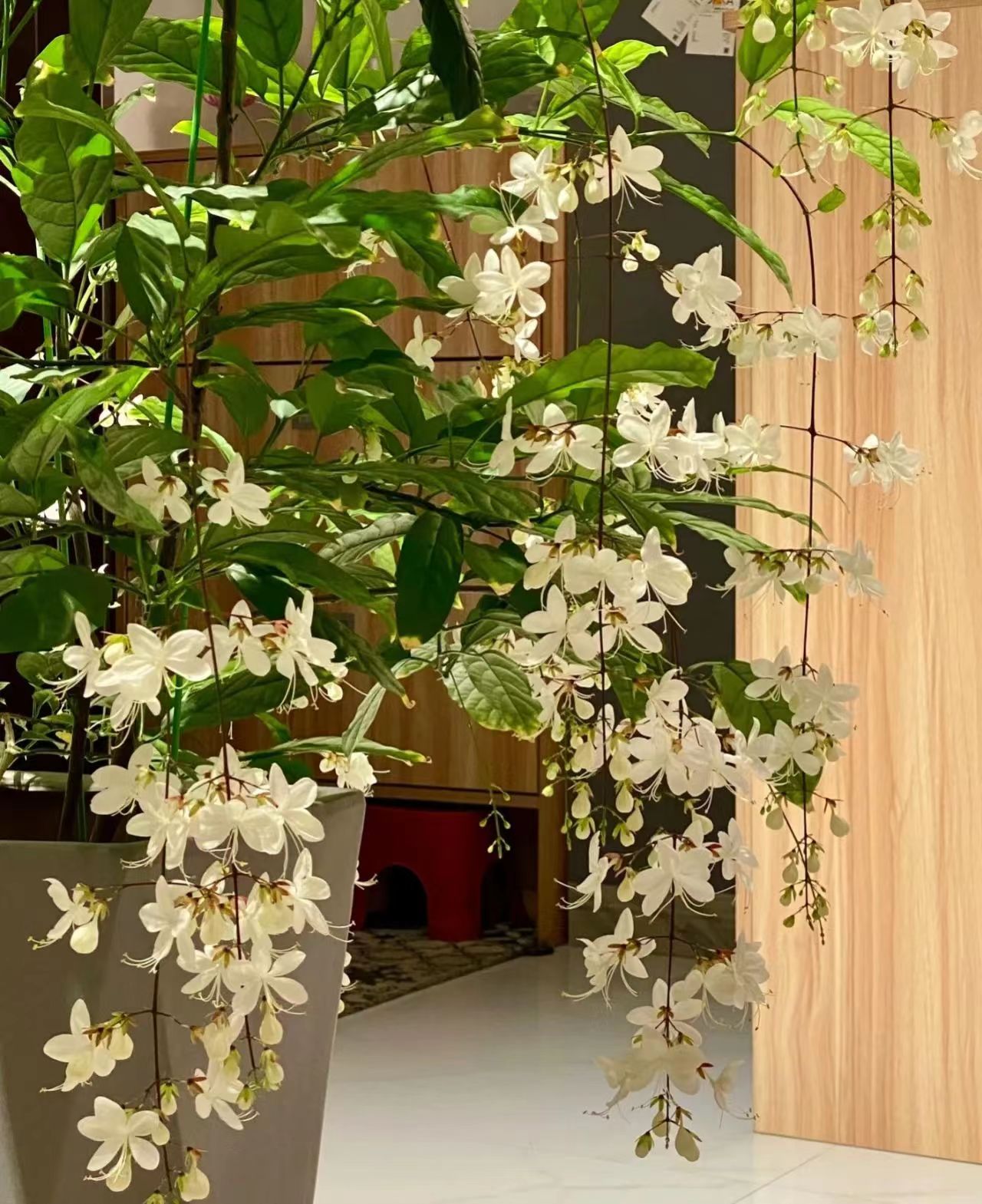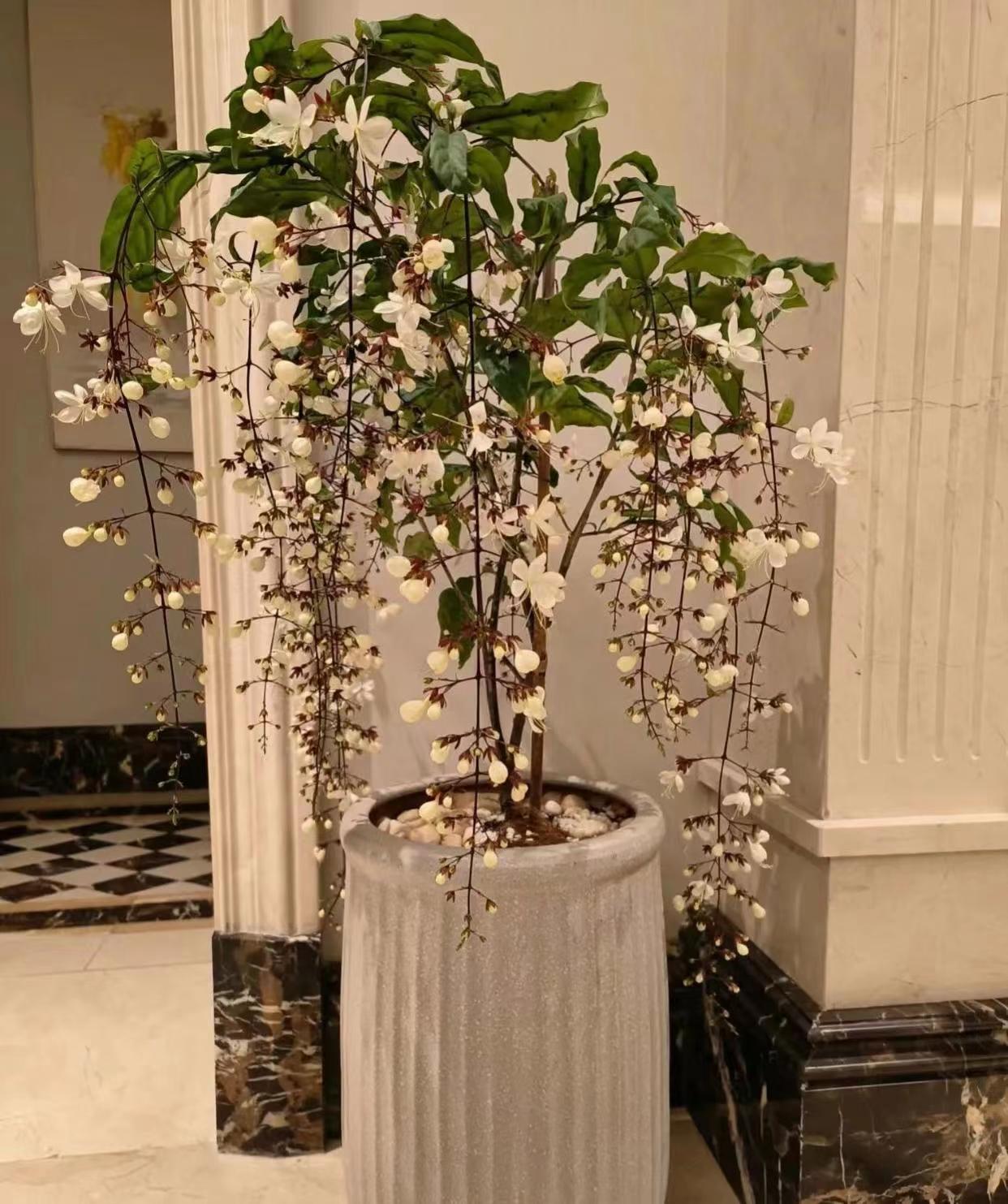 客厅自从添了这盆垂丝茉莉,给客厅增光厅是很多,让整个沉闷的客厅都变得灵动起来。就连来做客的朋友,都会纷纷的驻足观赏,久久不肯离去。