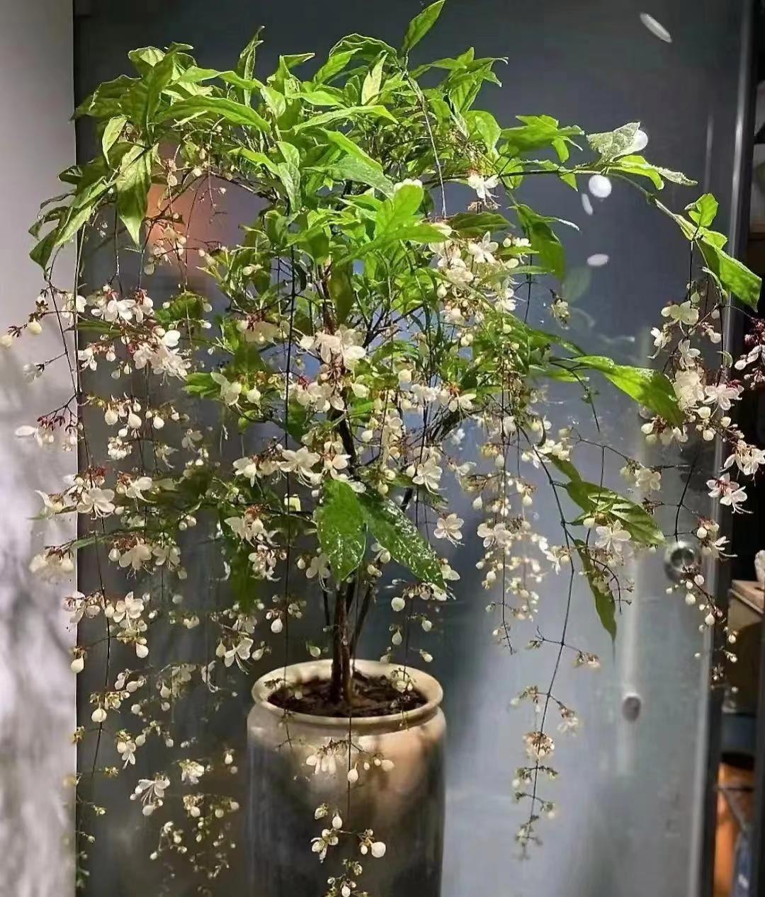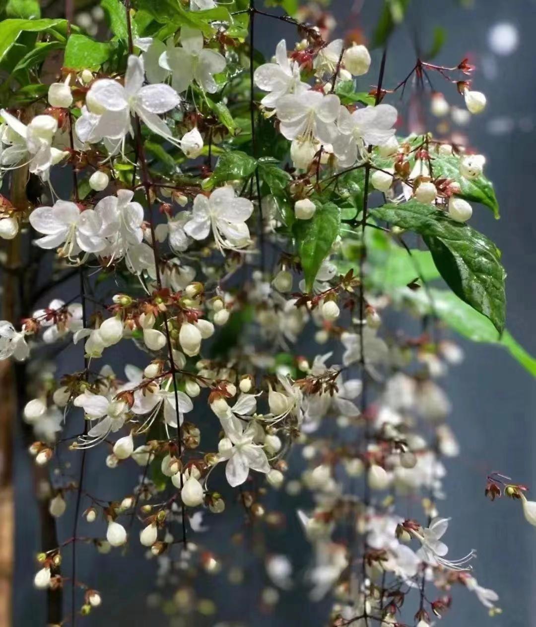 垂丝茉莉,花色洁白芳香,柔美素雅,花序如同一串串蝴蝶一样垂下来,看上去特别的精致,很唯美!家里养上一盆,好像精致的艺术品一样。