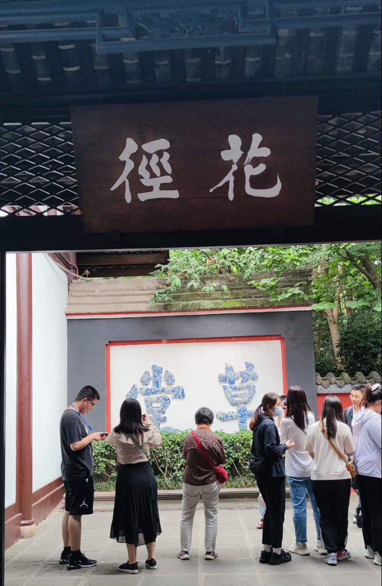 花径,杜甫屋前一条栽滿花木的小径,尽头是“草堂影壁”。“花径不曾缘客扫,蓬门今始为君开”,因此诗而得名。