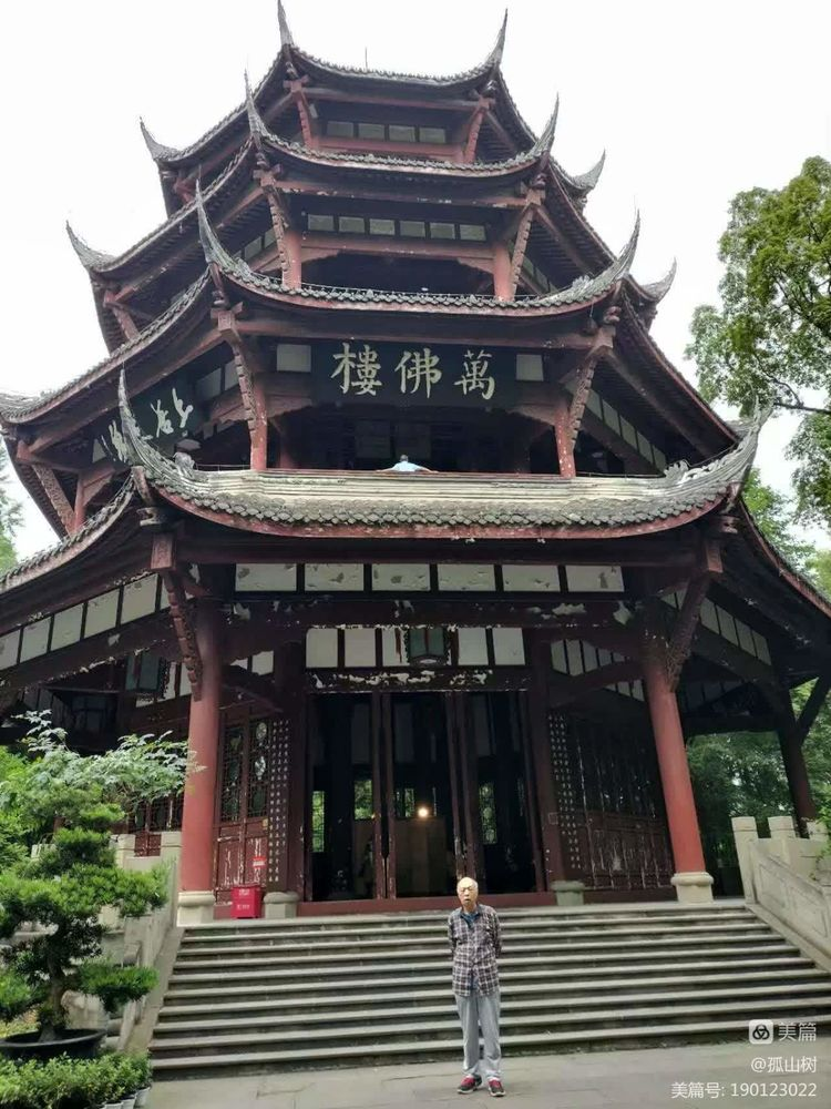 万佛楼,矗立草堂东面楠木林中,2005年重建,复原了“东有崇丽阁,西有万佛楼”之旧貌,四层,看着很高。楼梯窄,对面有人上下,须侧身。登最高处眺望,滿目皆树。