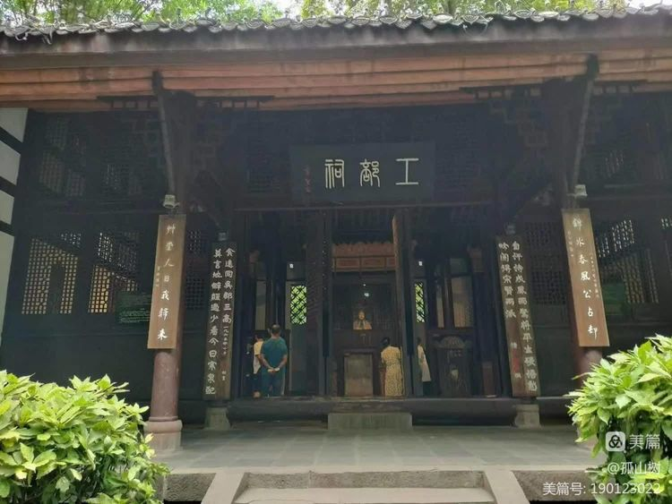 工部祠,祠堂一屋三楹,封山亮柱,高台石阶,花窗格门,肃穆庄重。祠内有明清两代石刻杜甫像。宋代诗人黄庭坚、陆游以杜诗为宗,清代将二人配祀杜甫像两侧,又称“三贤堂。”有“荒江结屋公千古,异代升堂宋两贤”的联语。
