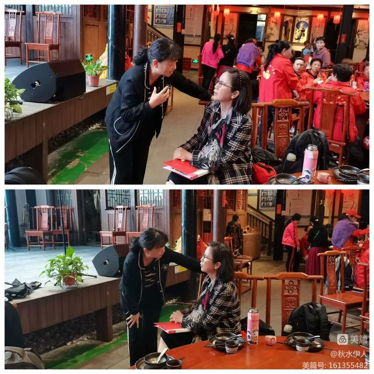 看,幽兰和毛爱珍理事长商量活动需要注意的细节。