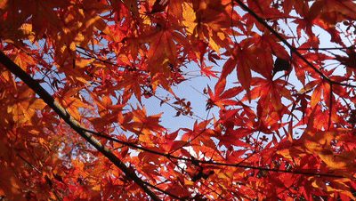 拾起掉落的枫叶细看时,更觉枫叶叶形的优美,叶子上清晰的脉络仿佛蕴藏着静美的生命力,不愧是代表秋天的枫叶,敢于红,且红得有气魄。