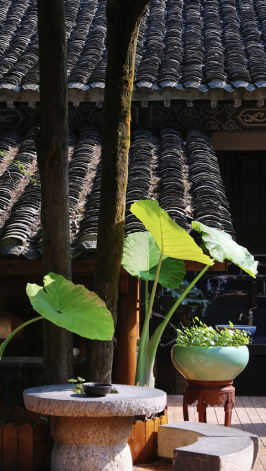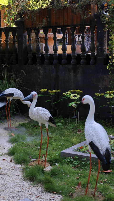 院中的景致恰如其分,仿真仙鹤如若一位充满禅意的老者,静静地守护着这方净地。