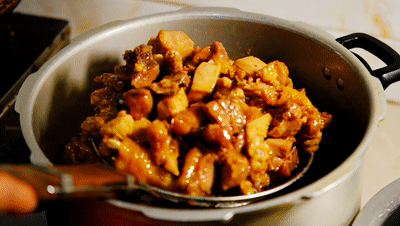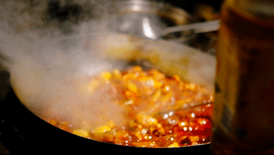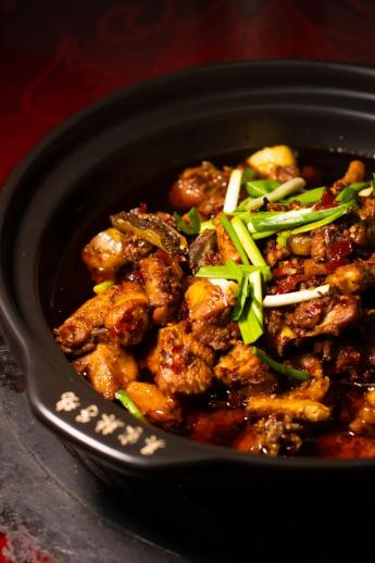 焖好的鸡倒入烧制好的热锅中不断爆炒,此时空气中充斥着麻、辣、鲜、香,瞬间冲进鼻腔。