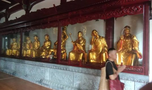 大殿两侧是十八位金身罗汉。