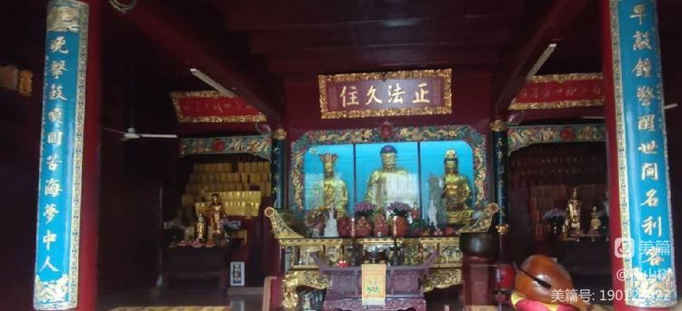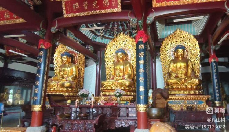 正殿是《大雄宝殿》,正中供奉三尊金身佛像,大约是西方三圣佛吧。