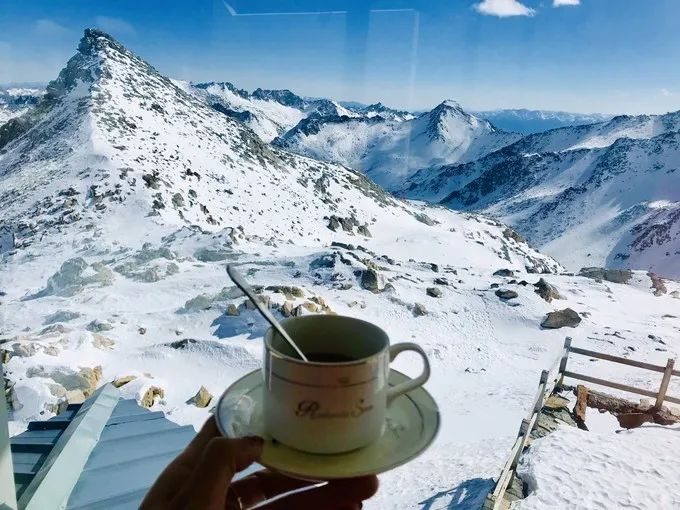 坐在4840米山顶的咖啡店,看着落地窗外的雪景,一股幸福感油然而生。