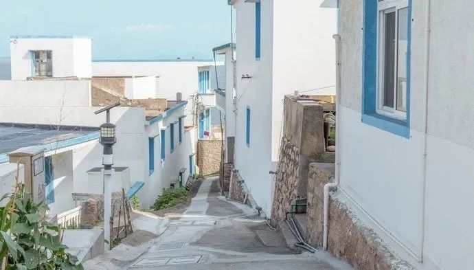 微寒的海风,在冬日花鸟岛上空静静吹拂,吹得天愈高愈净,让柔金的日光飘洒落下,光影镀在花鸟村纯白点蓝的座座屋宇上,让村中海风都染上治愈透蓝色。