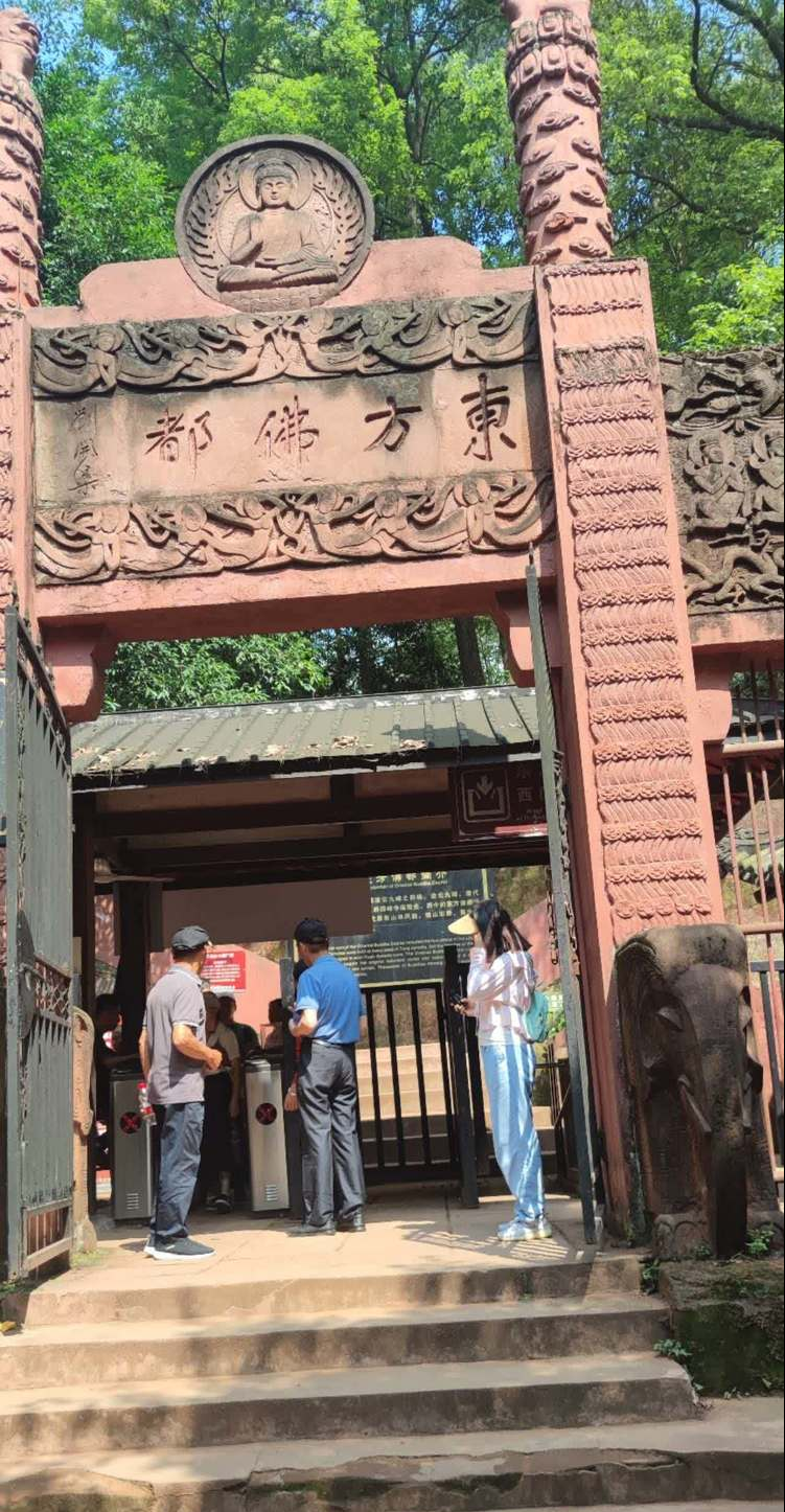 东方佛都景区现辖凌云九峰之四峰。唐代九峰各有寺,抗元战火将四峰寺庙毁去,而今《东方佛都》循古迹恢复旧貌,保留唐代原有山廓风貌,依山取势,高低错落,林隐千佛,洞中百窟。我们行程里没安排,不知深浅,也不敢贸然前行。