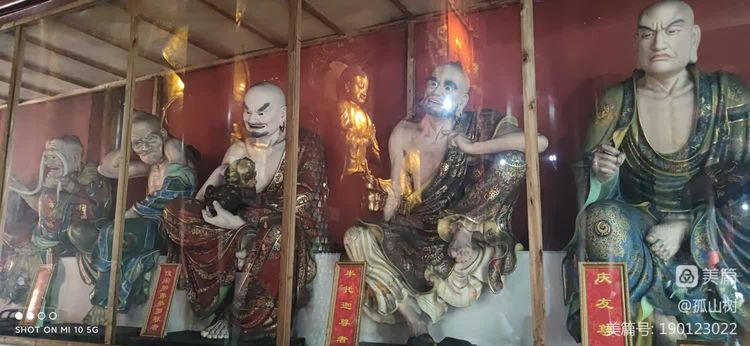 第二重大殿是大雄宝殿,正殿,供奉三尊佛,即过去,现在,未来佛,与一般佛寺无二,释迦牟尼的本尊模样。两侧各有九尊长得奇形怪异的尊者(和尚),倒也不凶恶,只是怪异。大雄宝殿后门是韦驮天尊。
