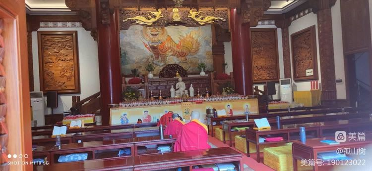 第三重殿是二层楼藏经楼,里面很大,一排排座椅,是全体僧人议事场所。现在有几位地位较高的僧人身披袈裟在做法事。