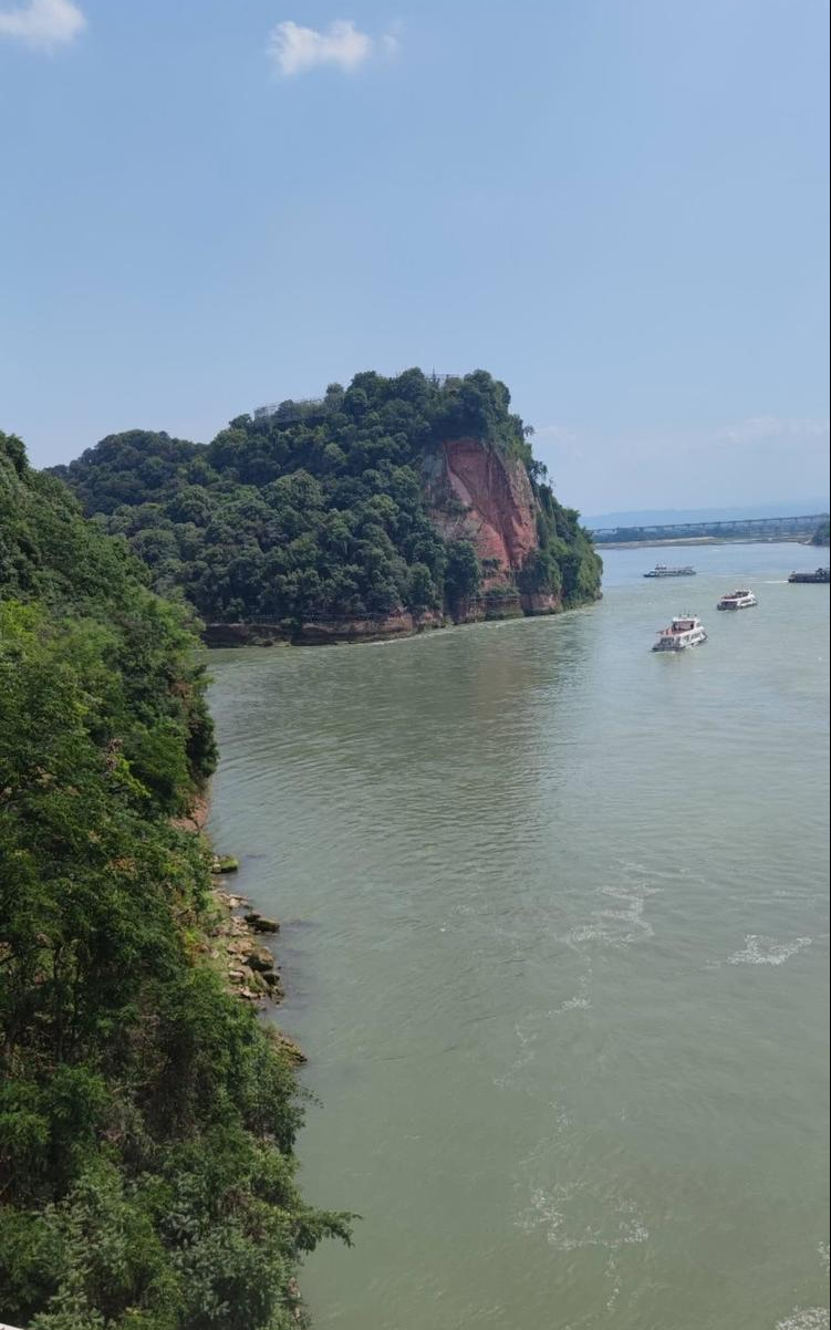 从江面上遥望大佛也是旅游一环,许多游船往返于此,游客们站在船顶平台上观望大佛,摄影拍照,但终不如在岸上看得真切。