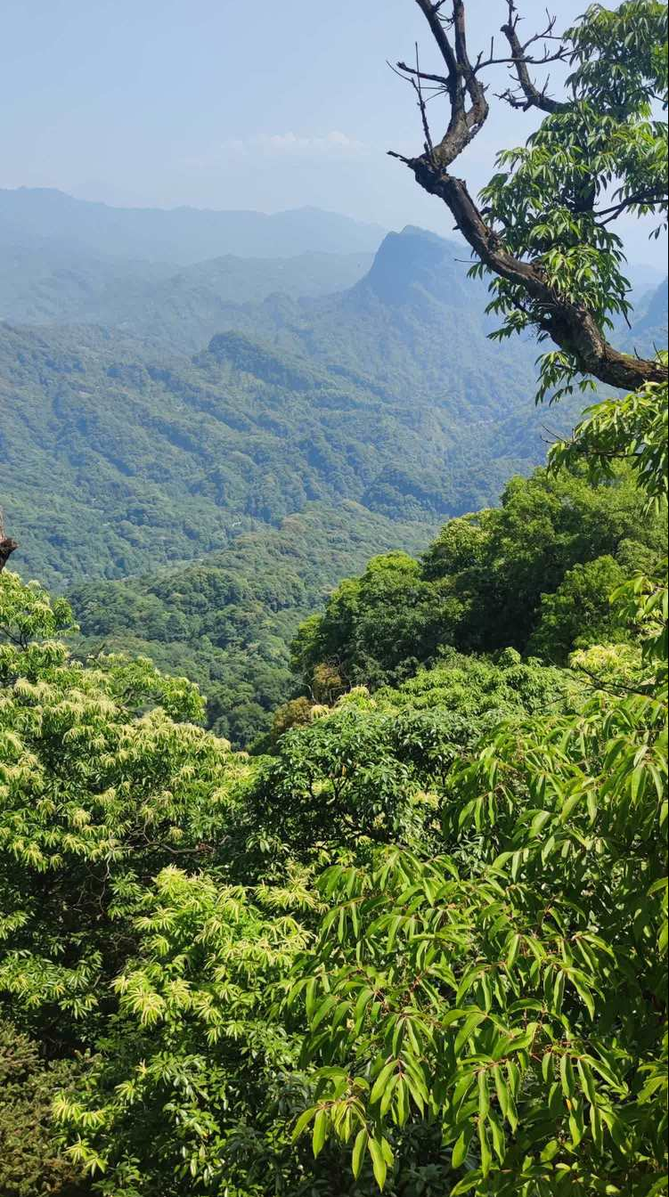 绕阁一周,俯瞰天地间,精神振奋。层峦叠嶂,连绵不绝,绿树葱郁,万木欣欣,天地穹庐,浩然荡气。