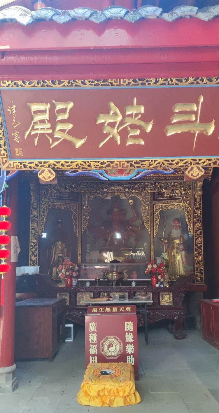 斗姥额有三目,肩有四首,左右各出四臂,为三目四首八臂的女神,神像慈容照人,是一位掌人间生死罪福的天神。