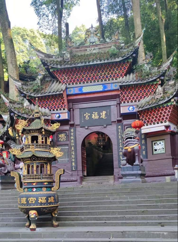建福宫,入园后首个道观建筑群。我们在这里乘观光车,35元,讲解器20元,解说词由道观人员讲解,每到一地,相应景致解说脱口而出,比导游专业,是这次川蜀旅游中讲解最好,详实、全面、清楚。