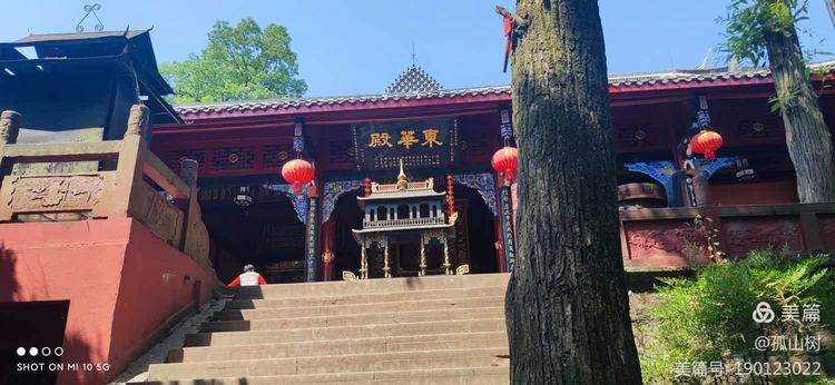 上清宫之上还有景点,少数人继续攀登。台阶是山石所砌,磨损严重,陡而高,每一步须小心谨慎。走了很长一段路,来到大赤天宫,道观上匾额题“高台圣迹”。