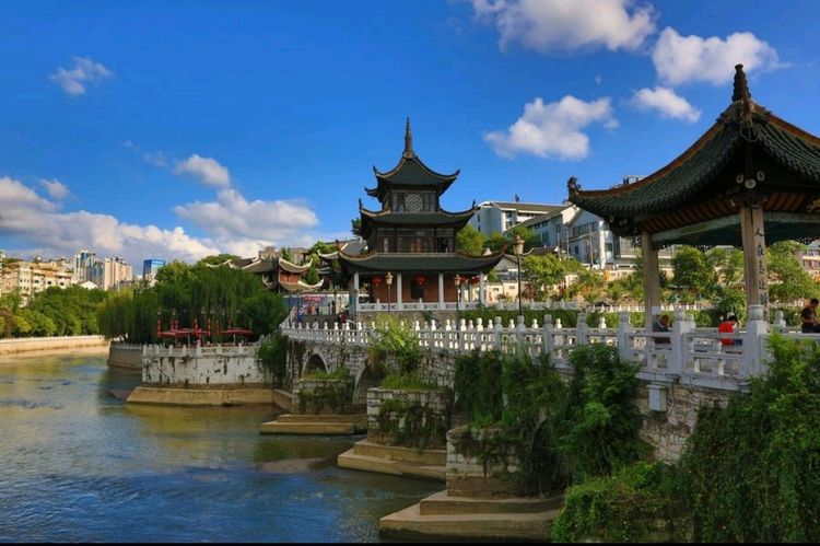 甲秀楼是贵阳的地标式建筑,位于贵阳市南明区翠微巷的南明河上,始建于明朝万历年间,位列中国10大名楼之一。