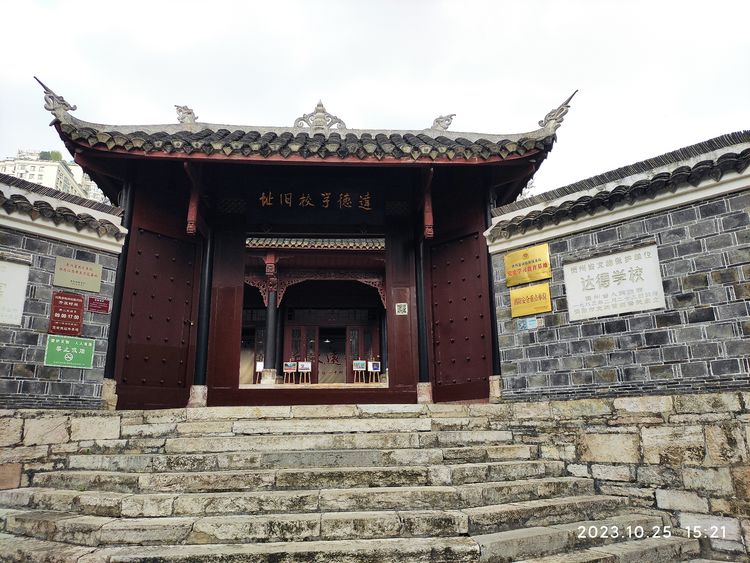 达德学校旧址位于贵阳市中华南路百花影剧院旁。原是元代修建的南霁云庙,明清两代曾多次重修和增修,改建为忠烈宫。穿过忠烈宫后的操场,就是达德学校旧址的主体部分,一所典型的明清风格的四合院。