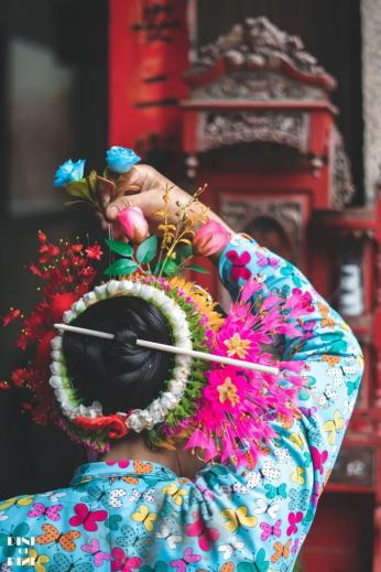这里最出名的便是蟳埔女的「簪花围」。蟳埔女,指的是生活在本地的渔家女,她们身着「大裾衫」和宽大的裤子,人人都戴中亚风格的「簪花围」头饰。很多旅行者前往此处,都会体验一次梳头戴花的装扮。