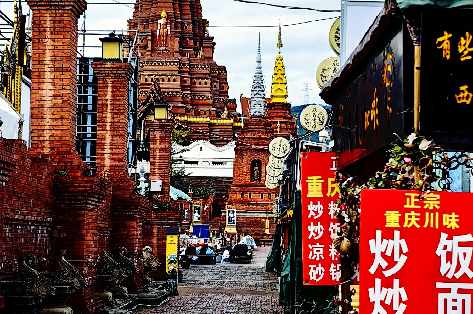 再比如,告庄西双景,是游客来版纳必打卡之地。这里人气极高,异国情调浓郁,简直就是个小型的东南亚市场。尤其星光夜市,就像天上掉入凡间的星河,璀璨夺目,美轮美奂。还有大金塔广场,几乎每晚都有各式演出。台上真人秀,台下水泄不通。湄公河更是无敌夜景,波光粼粼,小船穿棱,大金塔倒映水中,熠熠生辉。