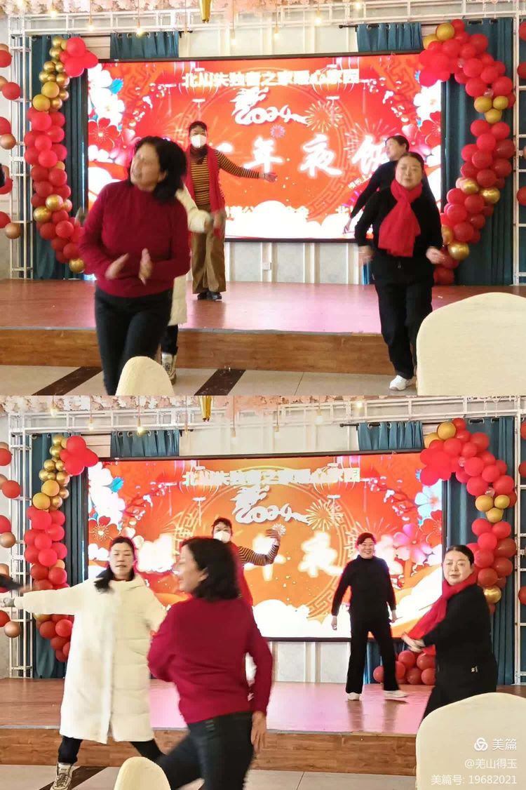 大家现场学会后,就一起跳起来:过年啦,相亲相爱这两个舞蹈。