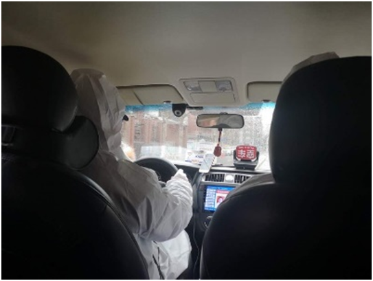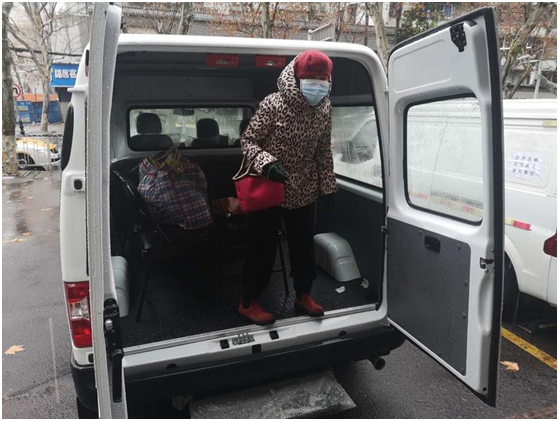 社区联系志愿者的车接我回家。