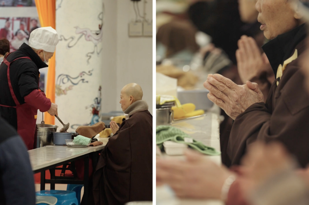 很多身体健康的老人还会服务别人,比较年轻的老菩萨,照顾更老的老菩萨。