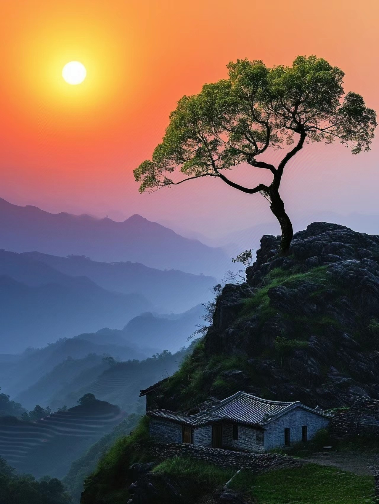清晨朝霞起凉风