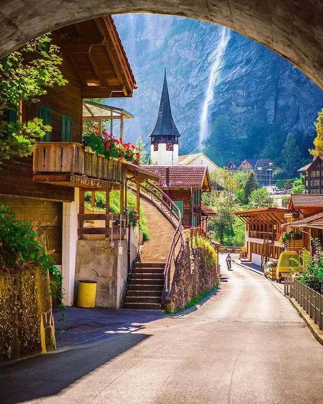 依山而建的镇上,每一幢房子都掩映在花园中,