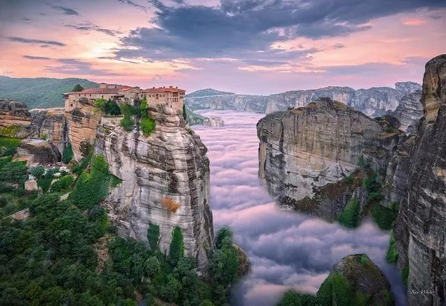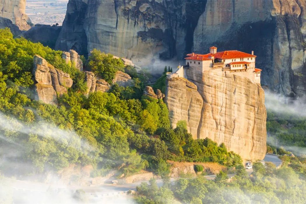 云雾缠绕着修道院,仿佛上帝的大手时刻在守护他的信徒。心怀坚定信仰的梅黛奥拉,虽然身处险峻的悬崖高顶之上,却犹如躺在上帝的怀抱之中,安然度过岁月的变迁。