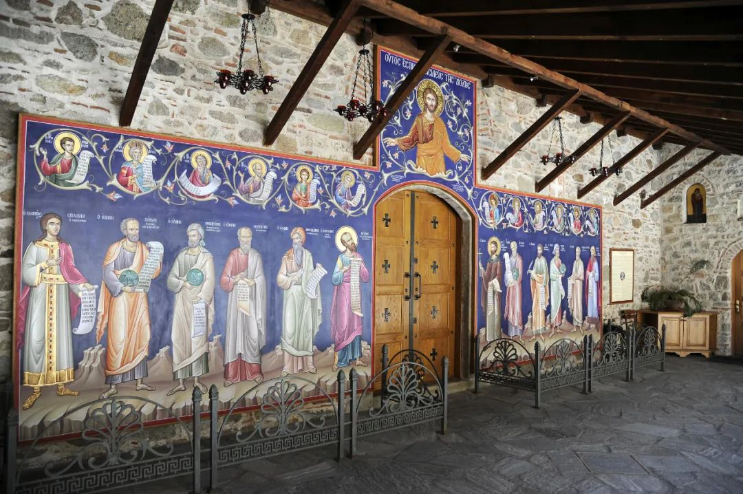 一千多年前这里没有修建上山的路,修道士们靠木梯、攀上高耸入云的峰顶,靠绳索竹筐运送物品上下山,并居住在天然岩洞内祈祷、赞颂和忏悔。到了中世纪时期,当地人都称其为空中修道院。如今,修道院不仅保留有古老的圣像壁画、羊皮手卷等古老文物,还依旧延续着古老的生活方式——日出而作,日落而息。