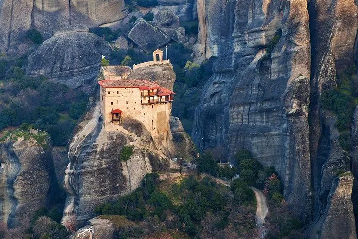 卢萨诺修道院Roussanou Monastery于1545年由来自Epirus的Joasaph和Maximos兄弟所建。他们是在一座非常古老的教堂的废墟上将它建设起来的。参观这座修道院,要从另一座山峰上穿过一座小桥。卢萨诺修道院规模不大,却更为人所知,因为背靠雪山受摄影师宠爱,经常出现在许多杂志和明信片上。这个修道院现由修女主持,是这里唯一的女子修道院。