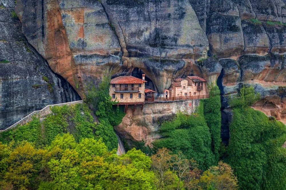 在希腊,修道院保持了古希腊的文化和传统,他们不仅是宗教中心,同时还是求学者和艺术家的中心。希腊东正教的重要圣地之一,“离上帝仅一步之遥”的梅黛奥拉修道院,其意为“悬在半空中”。修道院群源起于11世纪,大多建于天外飞来的山巅巨石之上,与世隔绝,遗世独立,美得令人屏息。