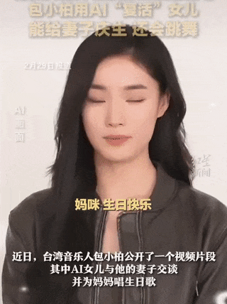 近日,包小柏公布了一段视频,视频中,“复活”的AI女儿向他与妻子说话,唱生日歌祝福妈妈。