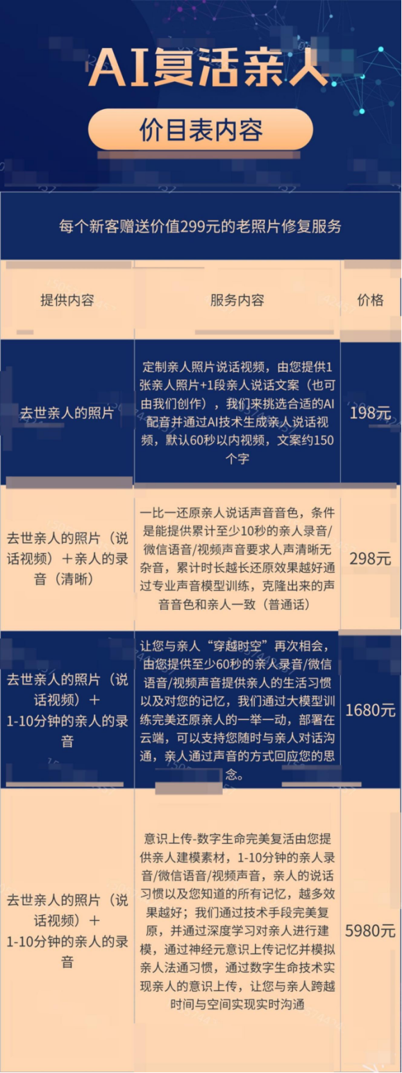 “只需要52.1元,就能还原逝去亲人的容貌并和ta聊天。”