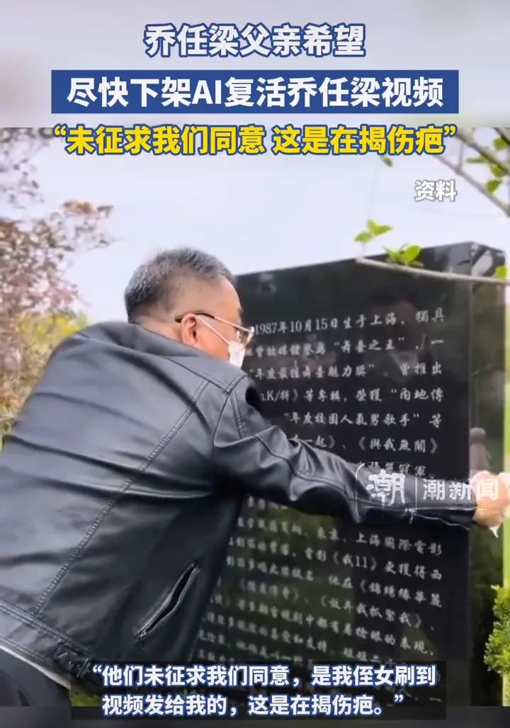乔任梁父亲也说,他已经看到网上传播开来的“儿子被复活”影像,“他们未征求我们同意,是我侄女刷到视频发给我的,这是在揭伤疤,不尊重我们。”