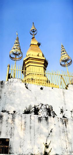 我匆匆忙忙的在山顶转了一圈,发现山顶有个寺庙,佛塔金光闪闪。俯瞰山下,鳞次栉比的高大佛塔和低矮的房屋构成了起伏的城市天际线,两条大河粼遴发光,琅勃拉邦古城尽收眼底。看看时间还有二十分钟就集合了,我随便拍了几张照片,算是普西山的留念吧。来也匆匆,去也匆匆,普西山这座著名的网红打卡地,就被我这样匆匆的打卡了,这就是跟团游的弊端,没办法,只能随缘看世界了。(待续)