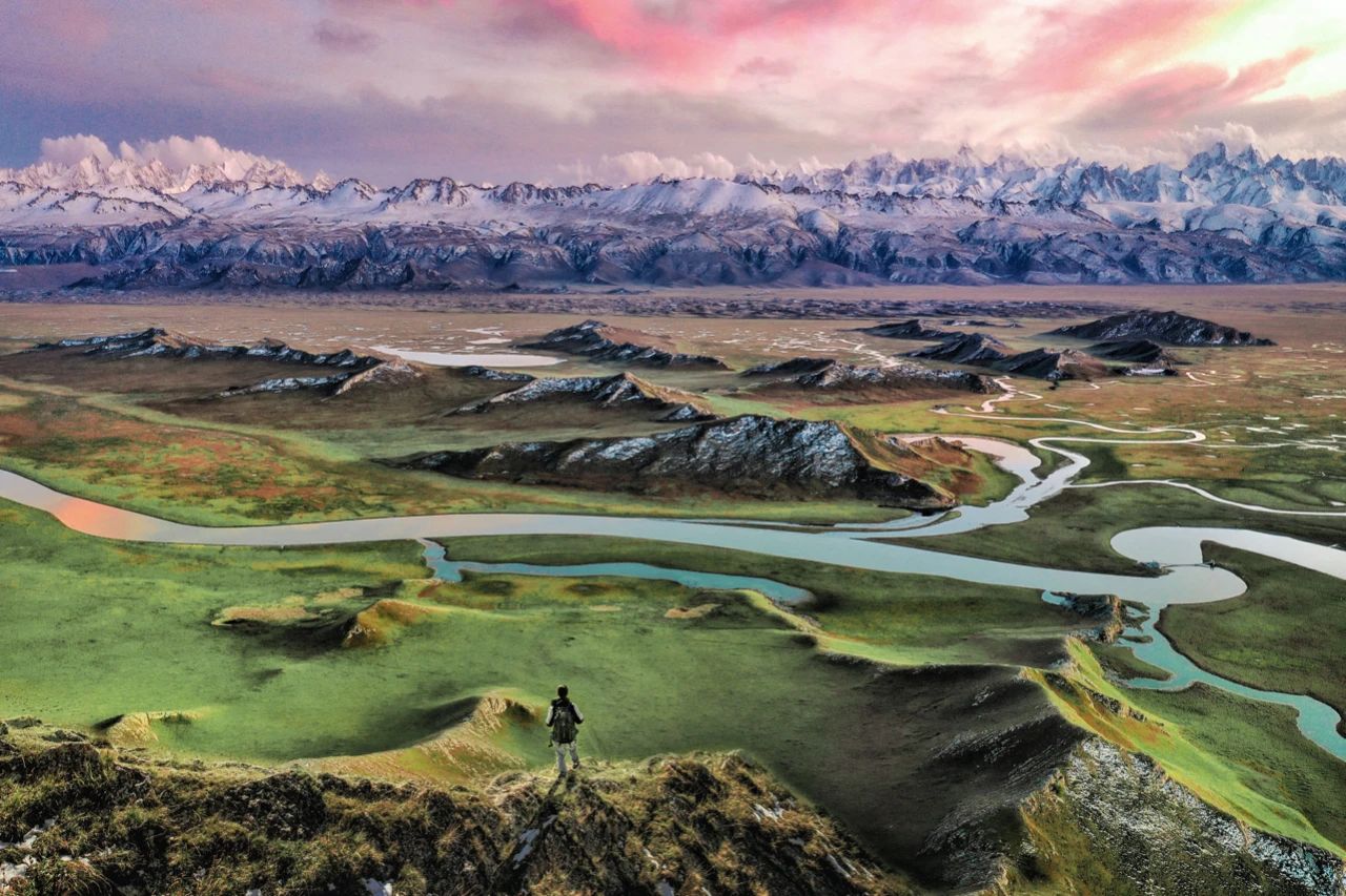 受益于大西洋暖湿气流的滋养,伊犁河谷水草丰茂,植被生长旺盛,畜牧业发达,雪山、峡谷、草原、花海、森林、溪流、山鹰、牛羊、冰川、湖泊等自然资源富集,使其成为新疆最著名的旅游地之一。尤其是夏季,草原变绿,郁金香漫山遍野盛开之际,伊犁的景观丰富程度更是达到了顶峰。